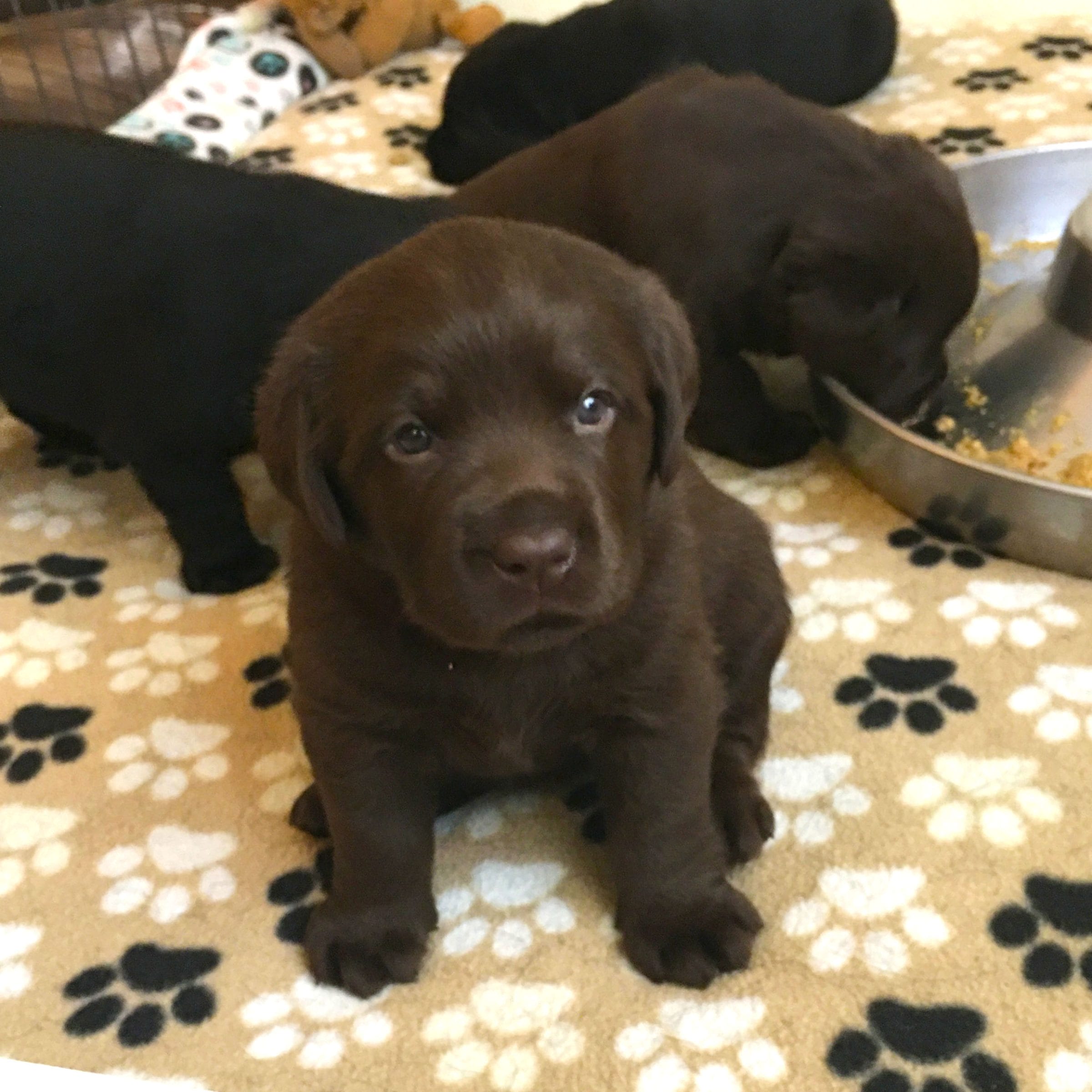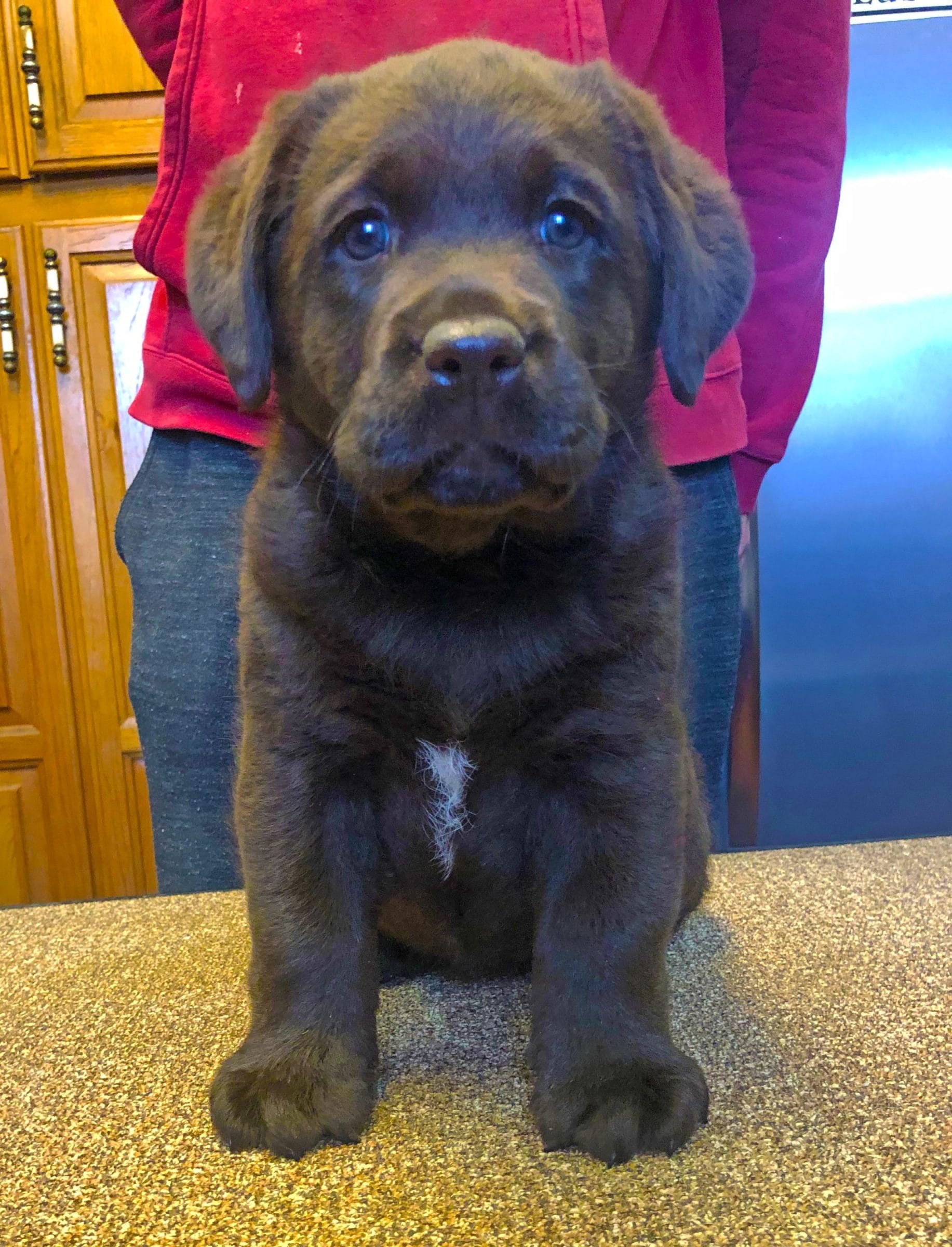 Annie, who is named after a variety of Heather, is our lovable chocolate girl. Annie loves to be loved on and will melt into you when you are loving her. She has never met a stranger (aka she loves everyone – 2 legged & 4 legged friends).