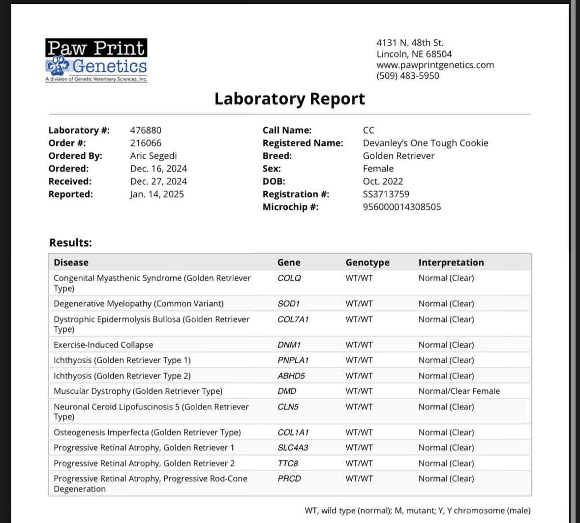 CC comes from a beautiful & health tested pedigree and is health tested herself with all passing clearances. She has been raised in a home environment and understands the coming & goings of living in a home as well as family routines. She is crate trained, knows how to walk on a lead & comes when called. She travels well in the car and has been a great ambassador for the breed.