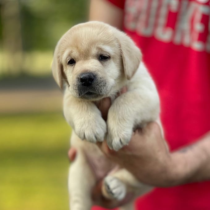 Dannie is our adorable yellow female from the Tigger (Hoffmann’s Ta Ta For Now) x Pixel (Devanley’s Picture This) litter. Her pedigree has multiple health tested generations beginning with her parents whose health clearances are included here.